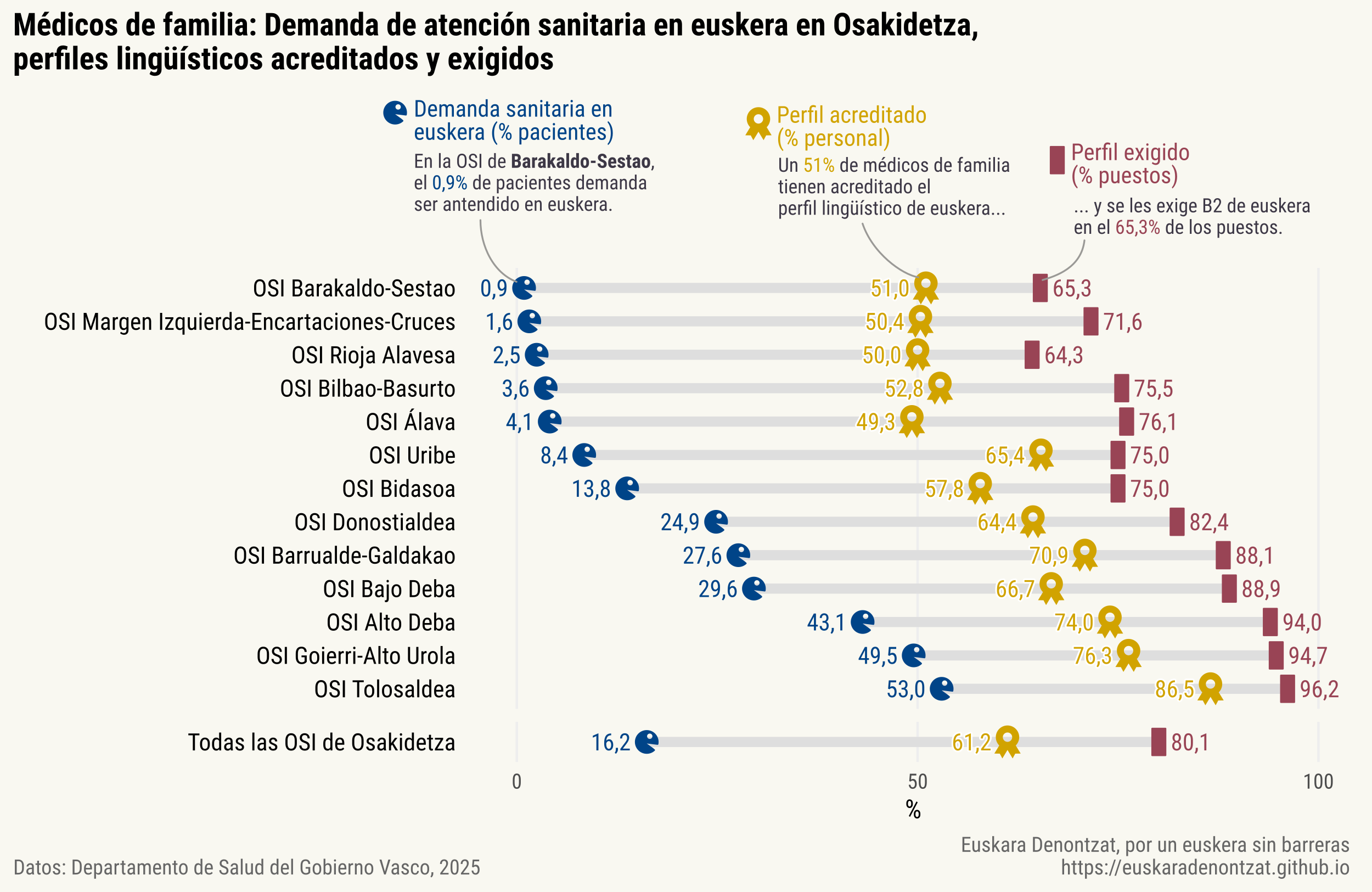 Explicación: El deber de la administración pública (tanto de las instituciones vascas, como de la incumplidora Administración General del Estado en Euskadi) es el de atender a quienes lo deseen en los idiomas oficiales en su territorio, y para ello los perfiles lingüísticos son un instrumento útil. Sin embargo para garantizarlo no es necesaria la misma proporción de puestos con perfil obligatorio en un ambulatorio de Azpeitia o de Vitoria-Gasteiz, porque la demanda de los pacientes es considerablemente distinta. Y los perfiles deben ser una garantía proporcionada de la elección lingüística, y no ser utilizada como una barrera injustificada para el acceso a la función pública (más aún cuando sólo un 15-20% de la población adulta tiene acreditado los niveles generalmente exigidos).